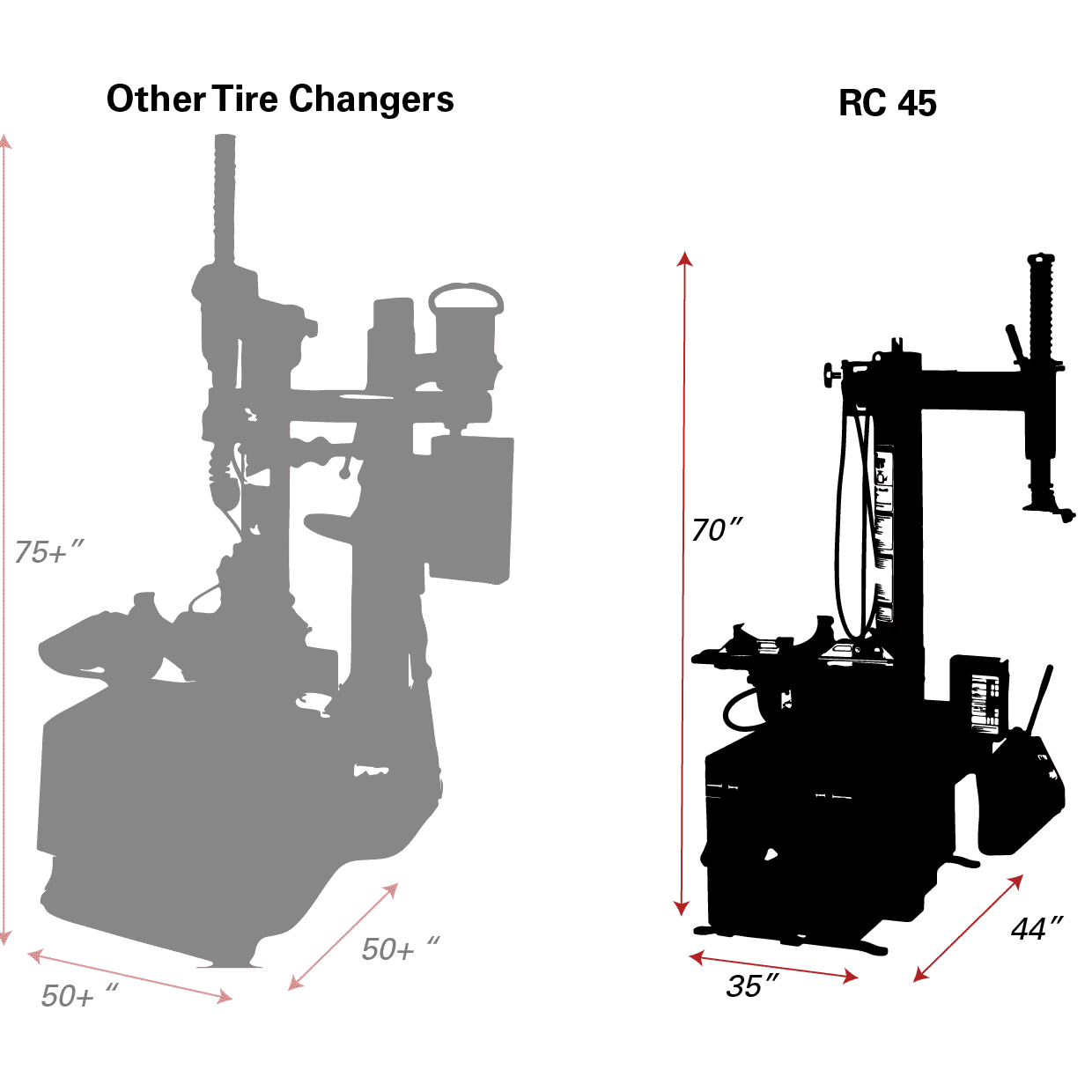 The Coats RC-45 Tire Changer – 100V provides reliable, durable performance for professional tire service. Built-in bead sealing jets and tabletop inflation speed up workflow, while the manual swing arm ensures precise alignment of the Duckhead® Mount/Demount Tool. Foot pedals give technicians full control during every step.
