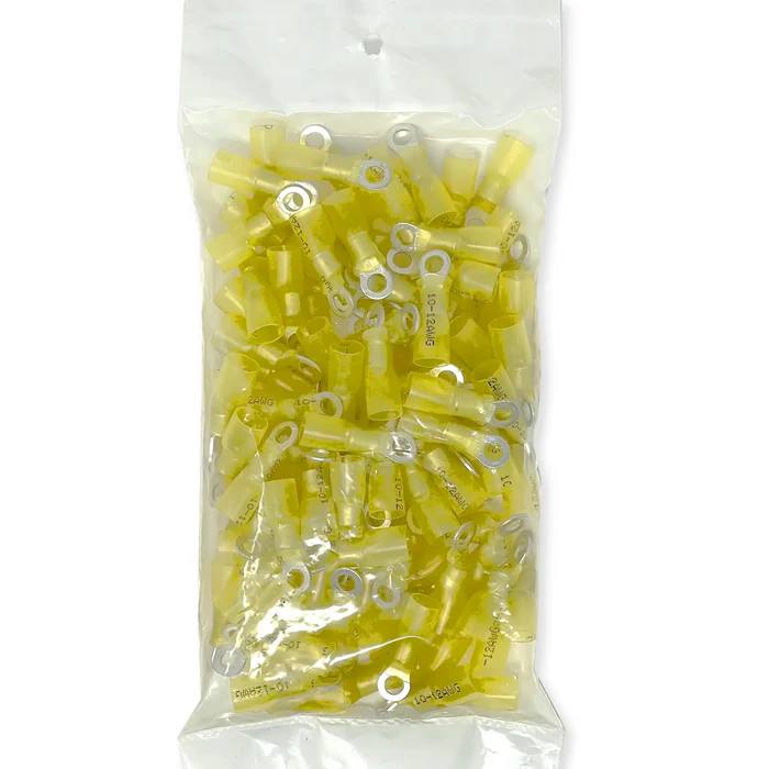 Elevate the reliability and durability of your wiring projects with these Stud Ring Heat Shrink Terminals designed for 12–10 AWG wires and a #10 stud hole. This 100-pack of professional-grade connectors delivers a superior combination of electrical performance, corrosion resistance, and vibration protection — making them ideal for automotive, marine, RV and industrial electrical applications.